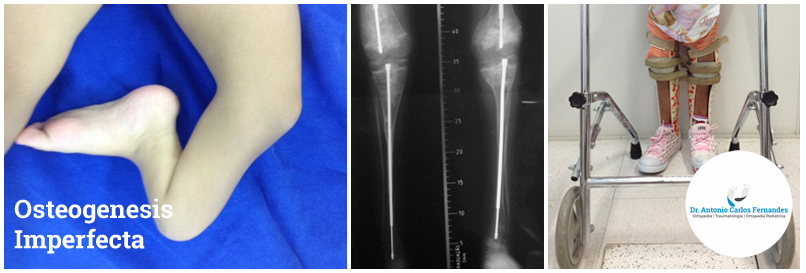 O tratamento das fraturas é individualizado e na maioria das vezes não cirúrgico, através de imobilizações com gessos ou órteses. As cirurgias ortopédicas podem estar indicadas para a correção de deformidades e arqueamentos ósseos, permitindo melhor posicionamento e maior segurança para o treino de marcha. Neste caso podem ser utilizadas hastes telescopadas, que acompanham o crescimento dos ossos longos e diminuem a possibilidade novos procedimentos.